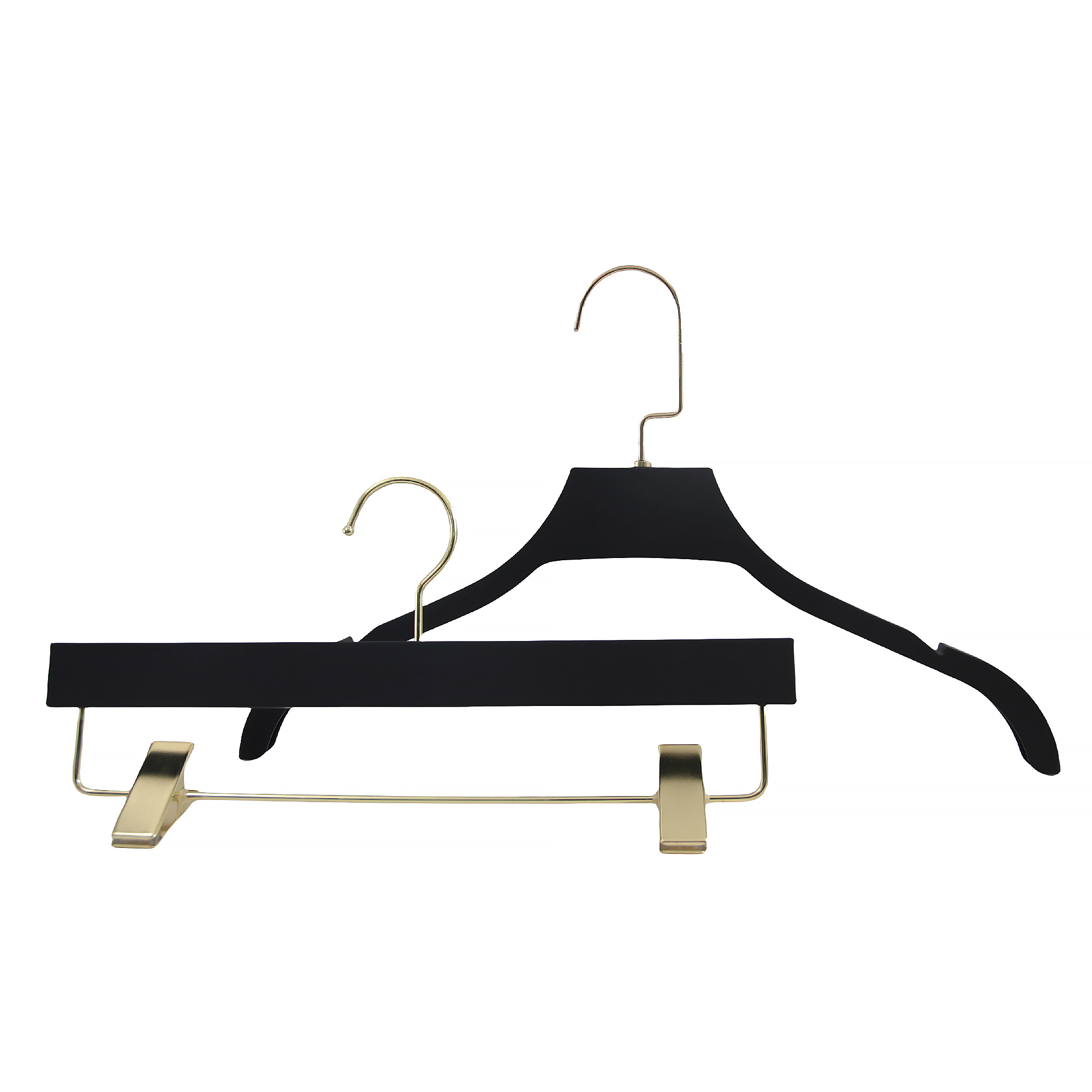 Keep your wardrobe or retail display sleek and organized with our Rubberized Black Plastic Skirt Hanger — designed for both style and function.